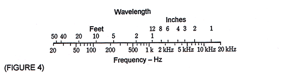 to 4600 cycles per second. (FIGURE 4) shows several wavelengths in feet and inches as a function of frequency. |