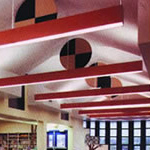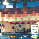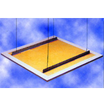 Description: A "Cloud" is the industry name for a panel that is suspended from the ceiling paralell to the floor. These baffles are fabricated with a rigid 6-7# density fiberglass board and have one of two types of support systems on the back of the panels. They are generally hung with the same wire used for dropping a T-bar grid. We can make any size up to a 4' x 10' baffle. These are usually installed in rooms without fire suppression sprinklers and give the feeling of a lower ceiling than the "actual" ceiling.