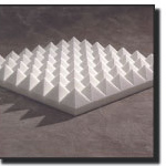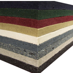 Description: This is a very low cost yet very absorptive acoustical panel made from recycled cotton fiber. They can be glued to walls and ceilings directly or grommets can be pounded into them and hung like baffles. They are not the most "finished" looking panels but they will reduce echo and reverberation at the lowest cost.